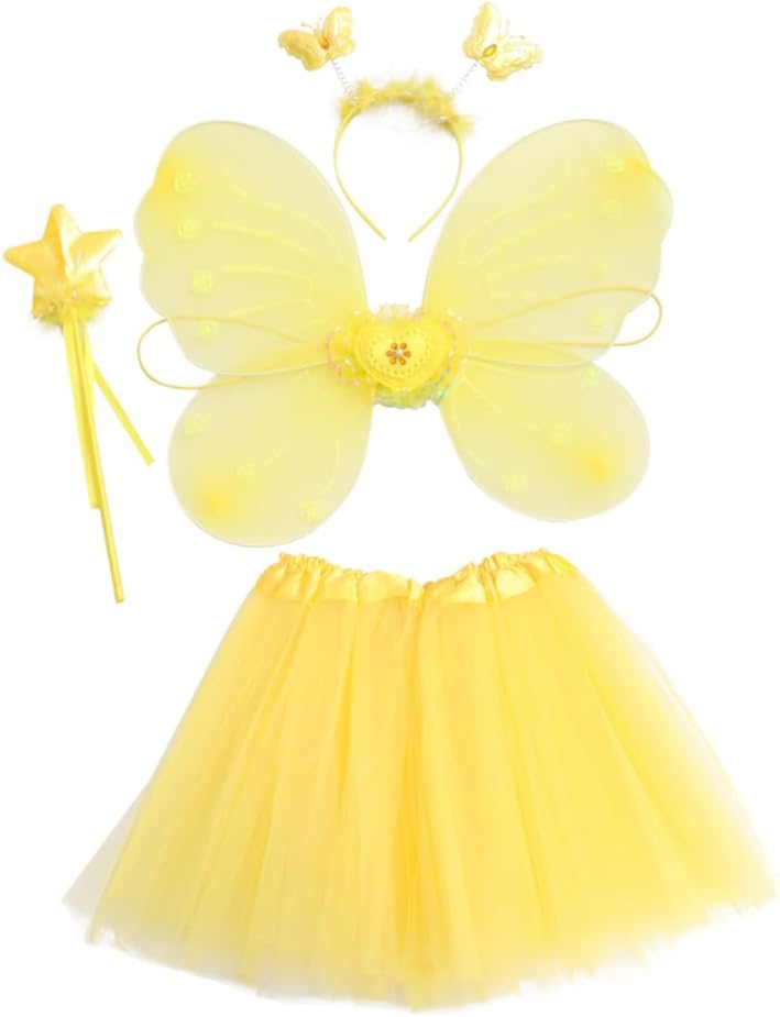 PRETYZOOM Butterfly Wings Set with Fairy Gauze Skirt Flared Tutu Dress up Accessory for Girls Dance Performance Party Costume