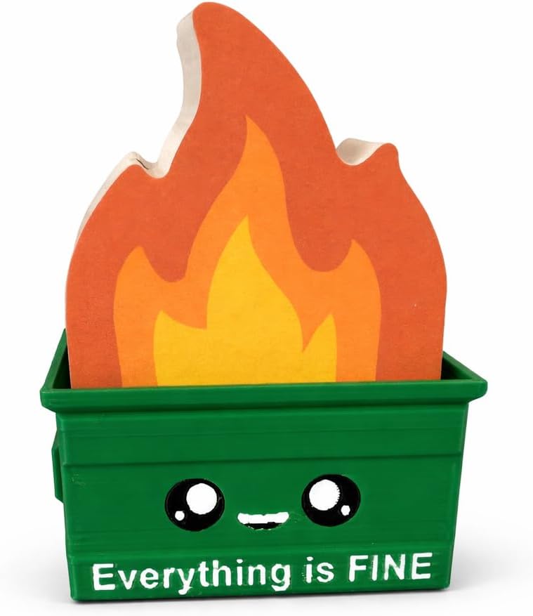 - CREATIVE DESIGN: Adorable dumpster fire-shaped sticky note dispenser with 400 sheets that form the flames, adding a humorous touch to your desk decor