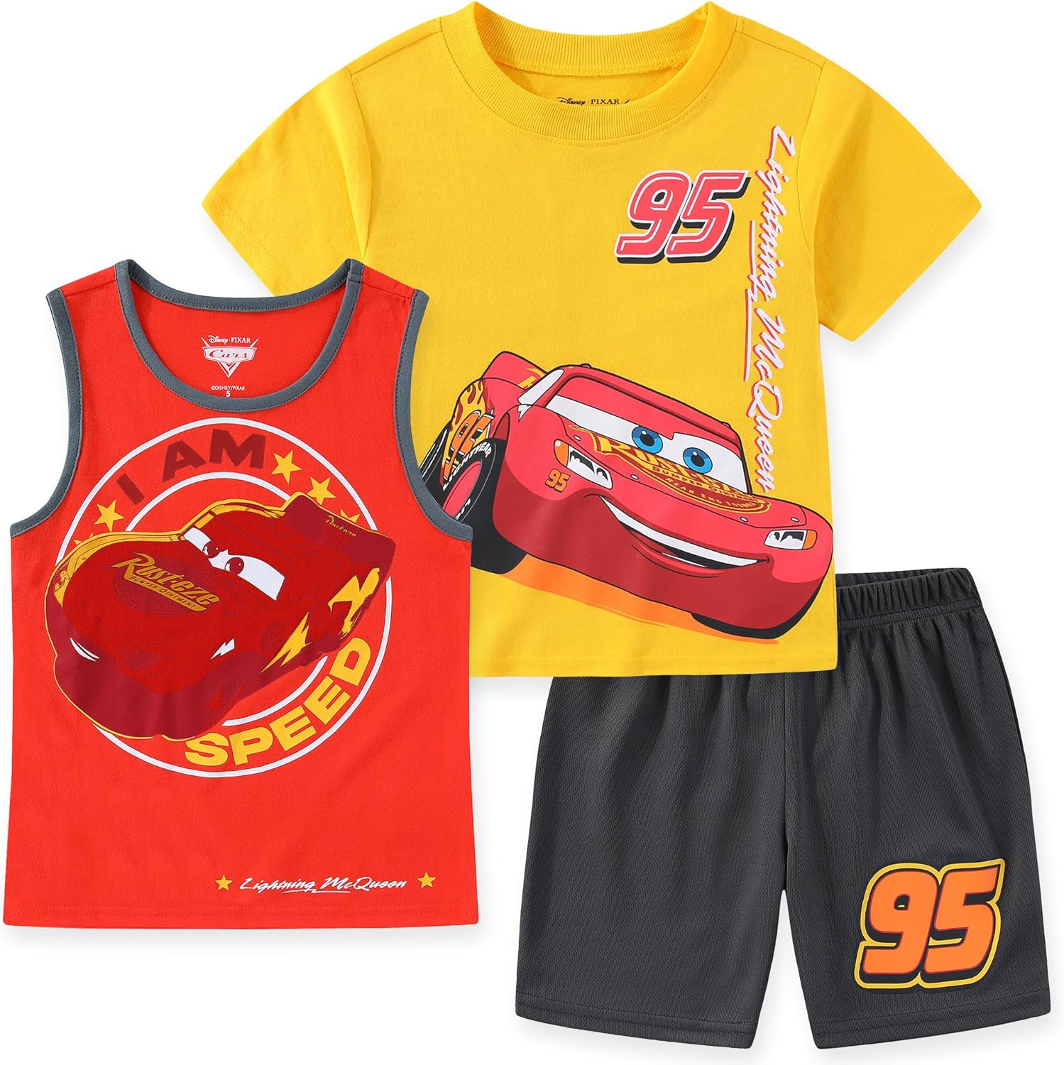 Disney Cars Lightning McQueen Boys Short Sleeve T-Shirt, Tank Top and Shorts 3 Piece Set for Big Kids