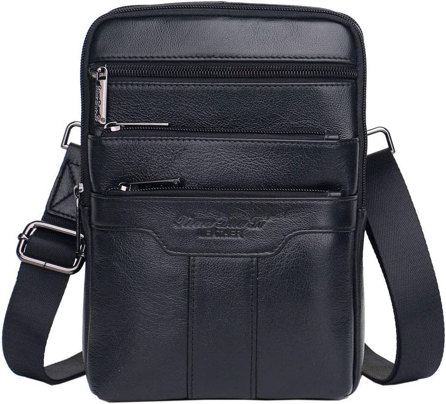 Hebetag Small Leather Sling Shoulder Bag Messenger Pack for Men Women Outdoor Travel Business