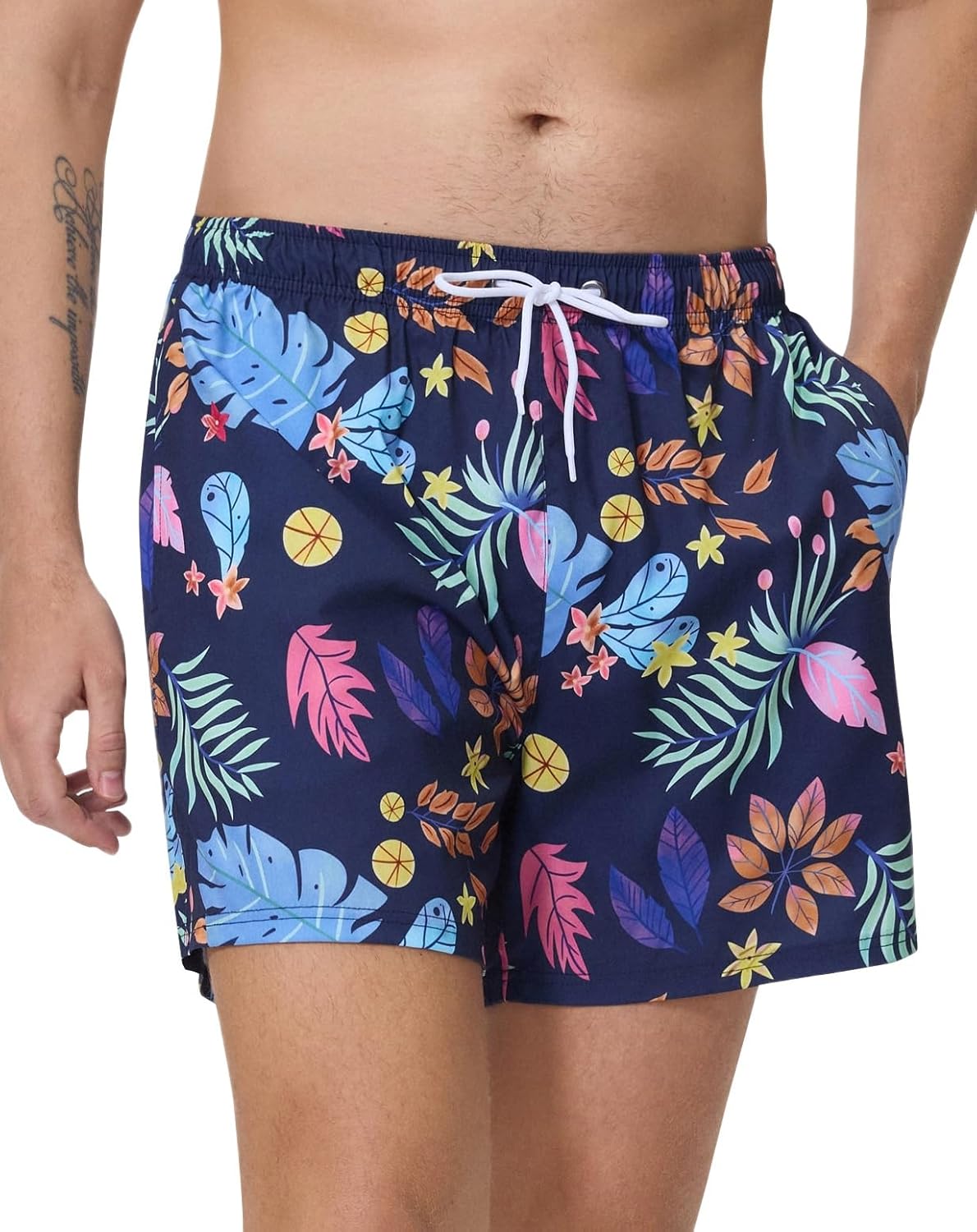Mens Swim Trunks with Compression Liner 5" Stretch Beach Shorts 2 in 1 Quick Dry with Zipper Pockets Board Shorts