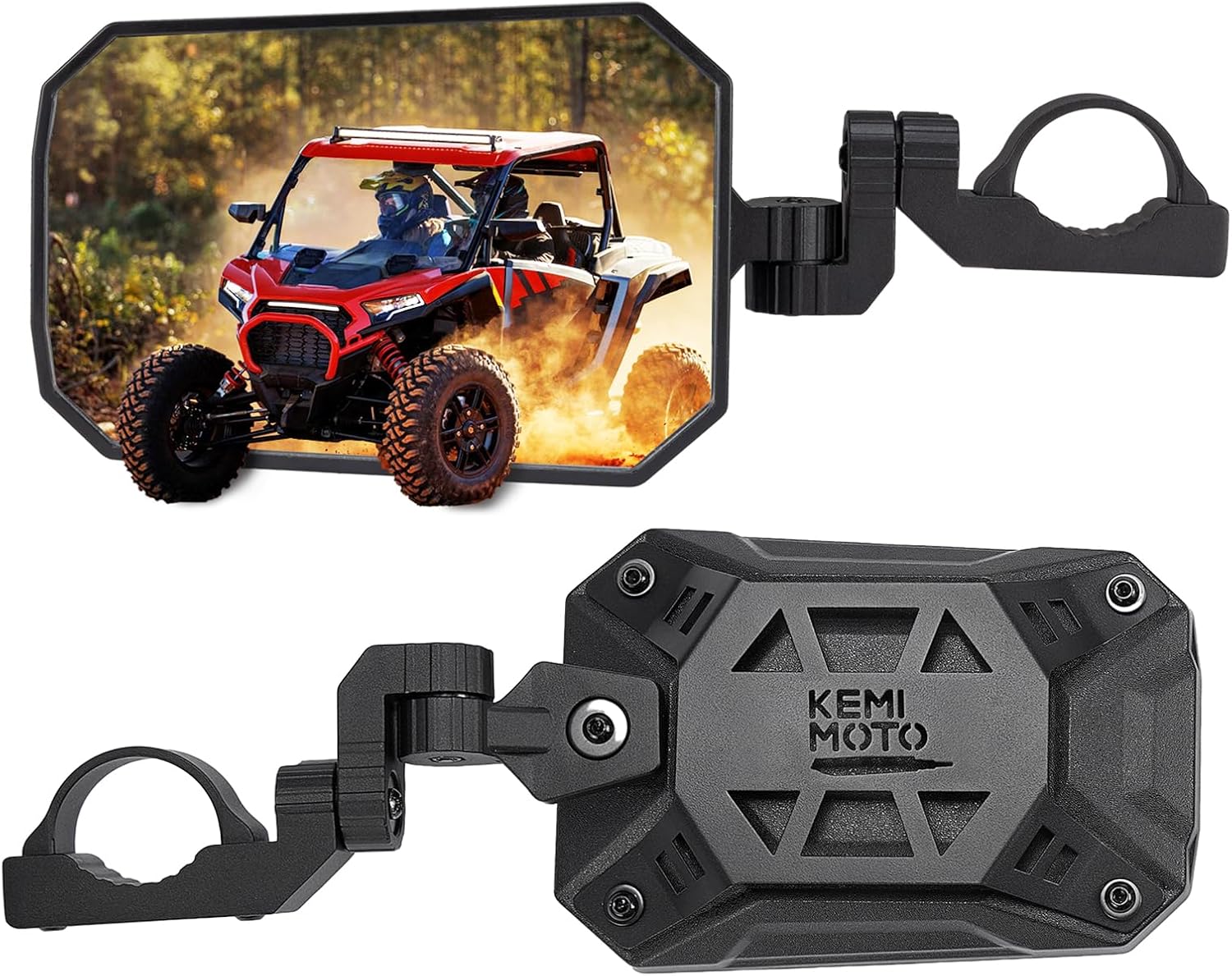 KEMIMOTO UTV Side Mirrors, One Mirror Two Purposes 8" x 5.3" Wide View for 1.65-2 inch Roll bar Compatible with Polaris RZR/Can Am X3/Pioneer/Talon/Teryx/CFMOTO Tool-free Multi-Adjustment Fit Big UTV