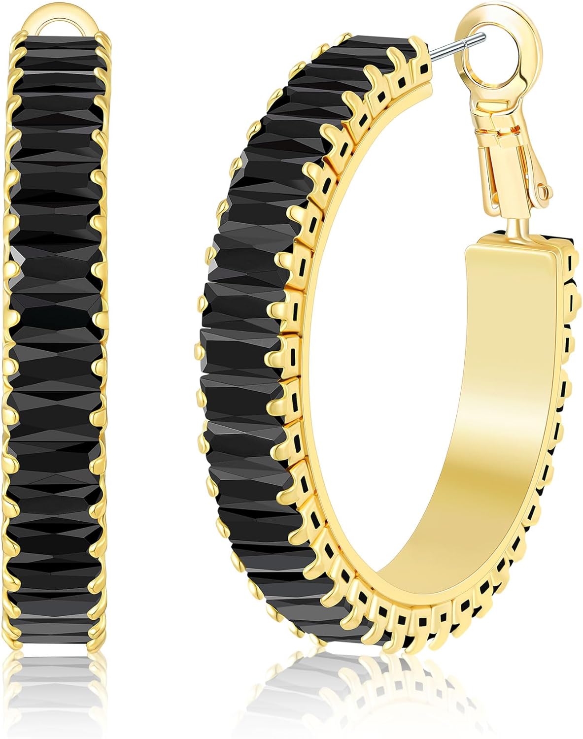 Lourny Gold Crystal Hoop Earrings for Women Trendy, 18K Gold Plated Chunky Big Cubic Zirconia Earrings Hypoallergenic Thick Earrings