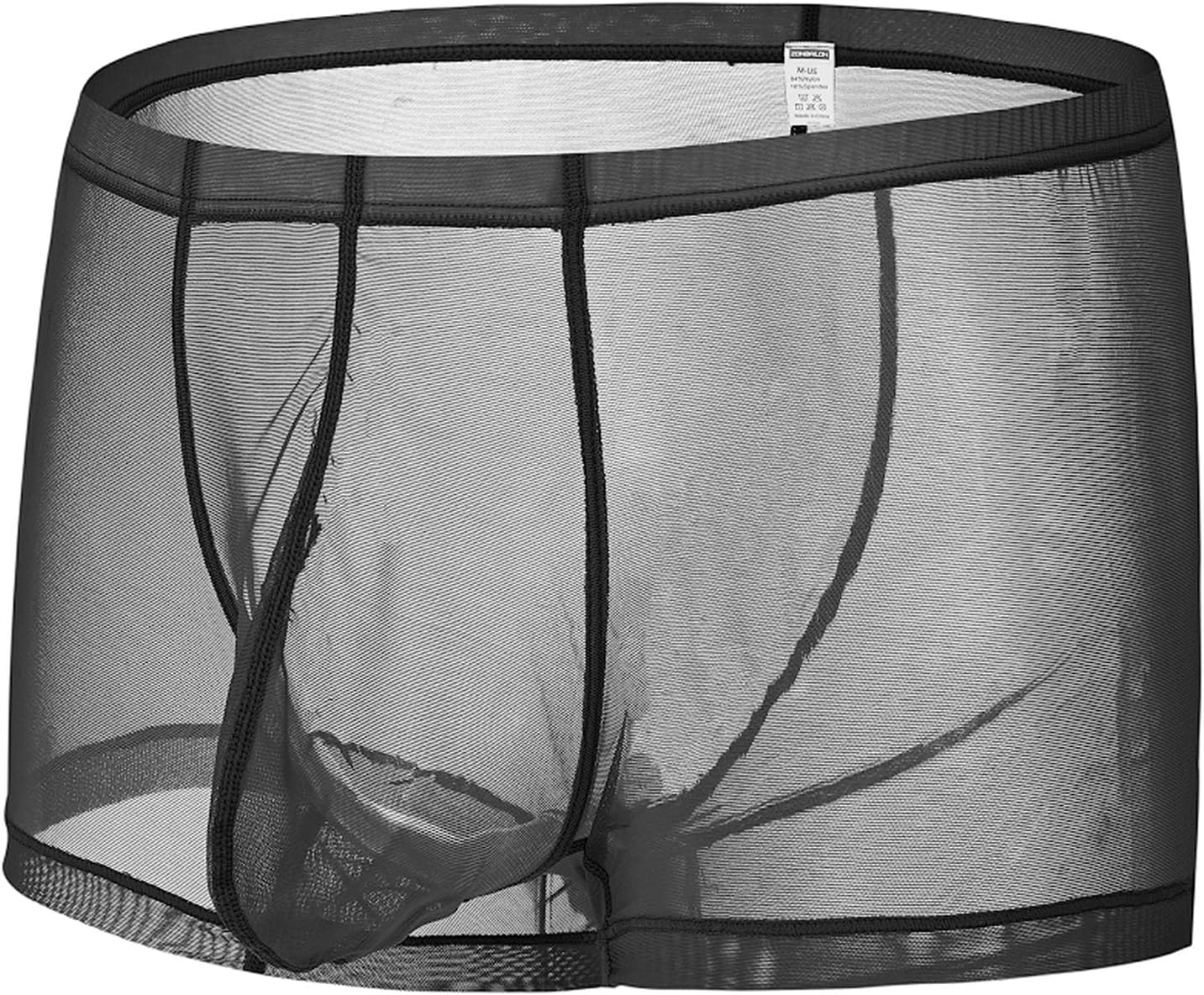 Men's See Through Underwear Ultra Sheer Boxer Briefs Bulge Enhancing Ball Pouch Trunk Underwear