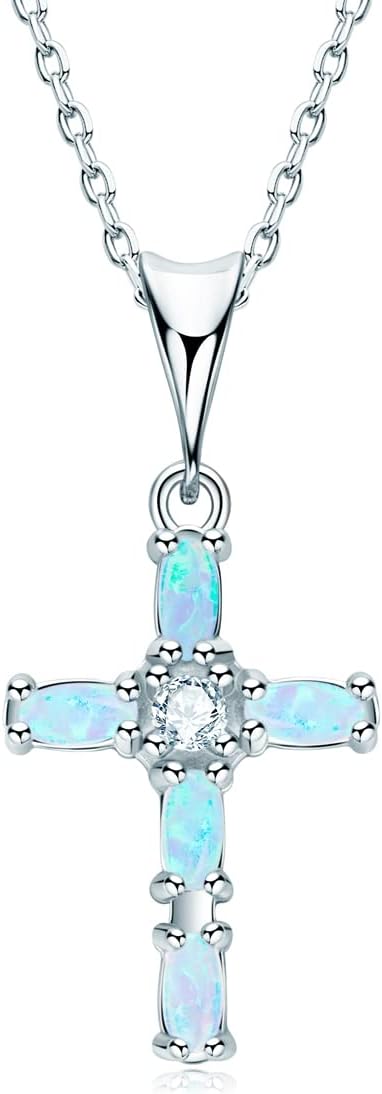YUNKAI Cross Necklace for Women: Sterling Silver Opal/Blue Cubic Zirconia Pendant Dainty Faith Cross Necklace Jewelry Gifts for Her Mom Wife Birthday Christmas