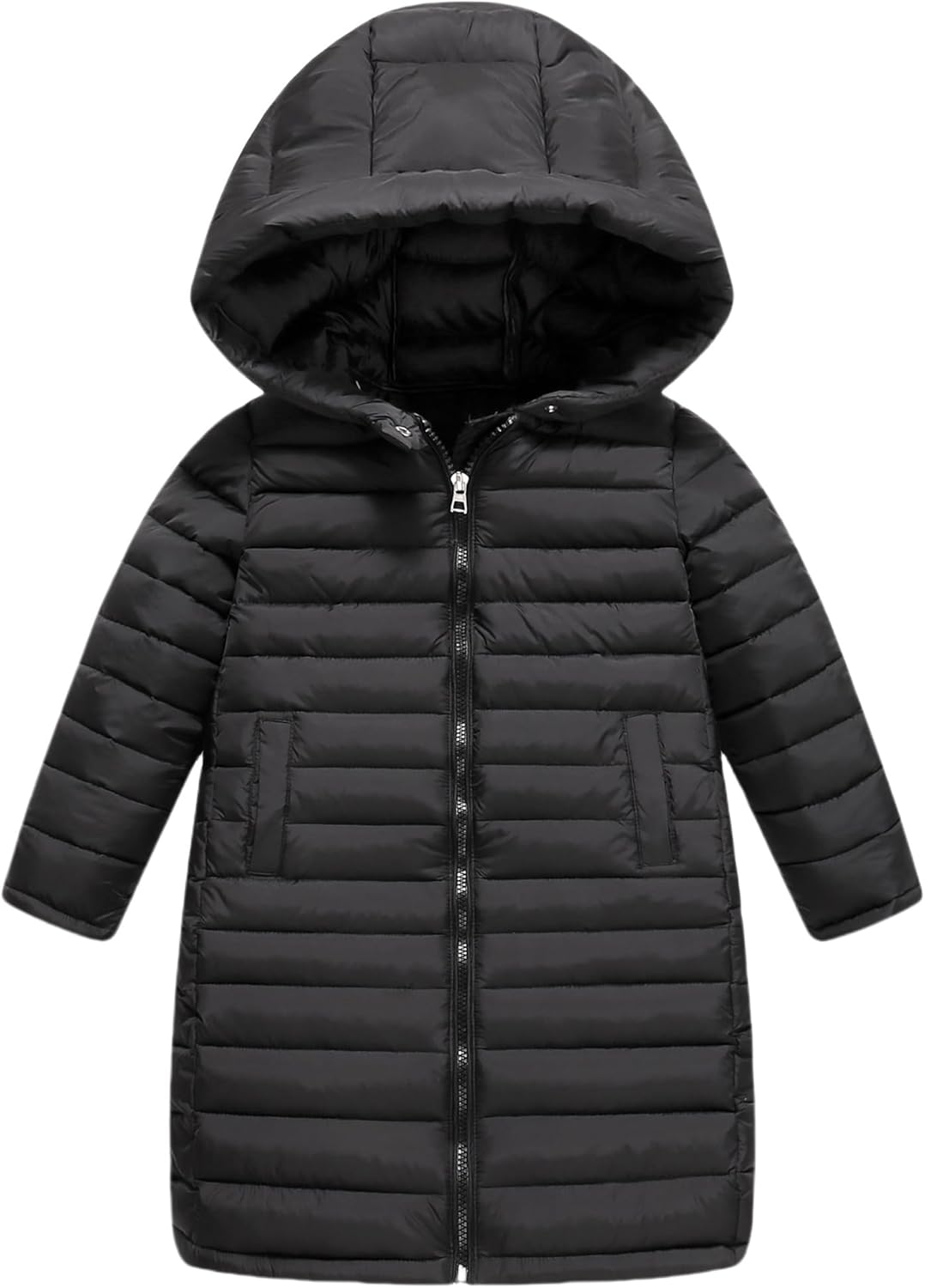 Happy Cherry Kids Long Down Coat Girls Zipper Puffer Hooded Jacket Boy's Lightweight Winter Jackets Outwear