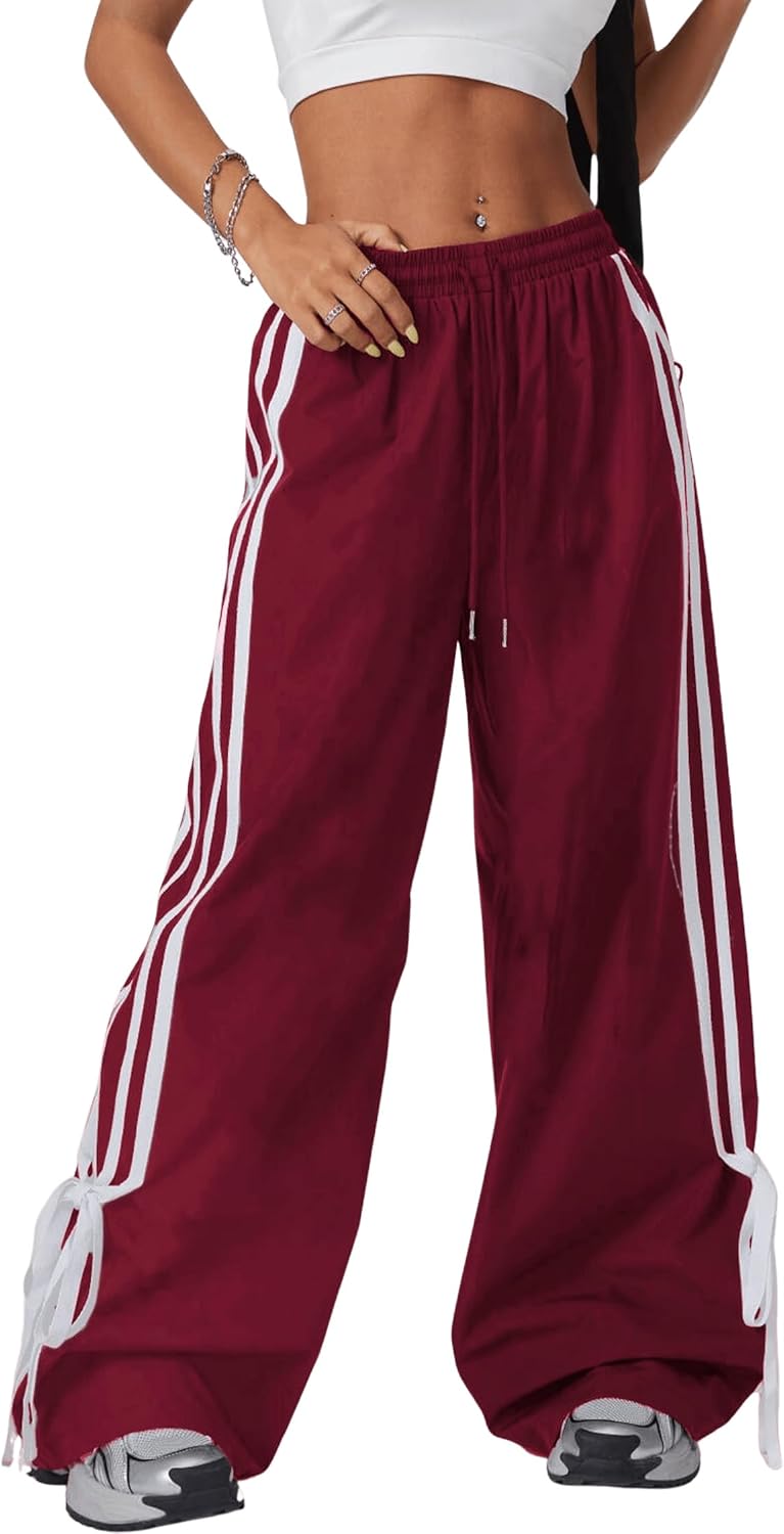 Women's Y2K Baggy Bow Wide Leg Pants Striped Track Elastic Waist Long Sweatpants Parachute Pants