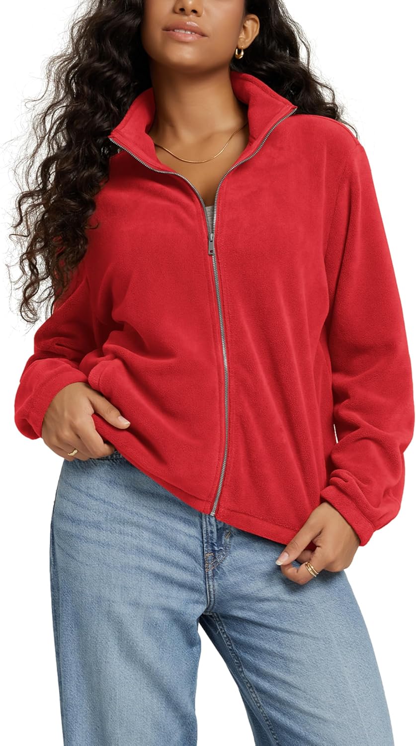ODODOS Women's Polar Fleece Full-Zip Jacket – Soft Warm Winter Essential Long Sleeve Outerwear with Pockets