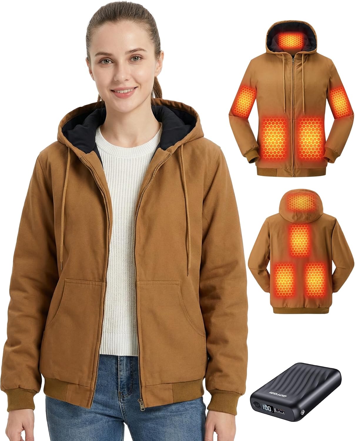 Heated Jackets for Women with 12V 18400mAh Battery, Graphene Canvas Womens Heated Jacket with Hooded for Outdoor Work
