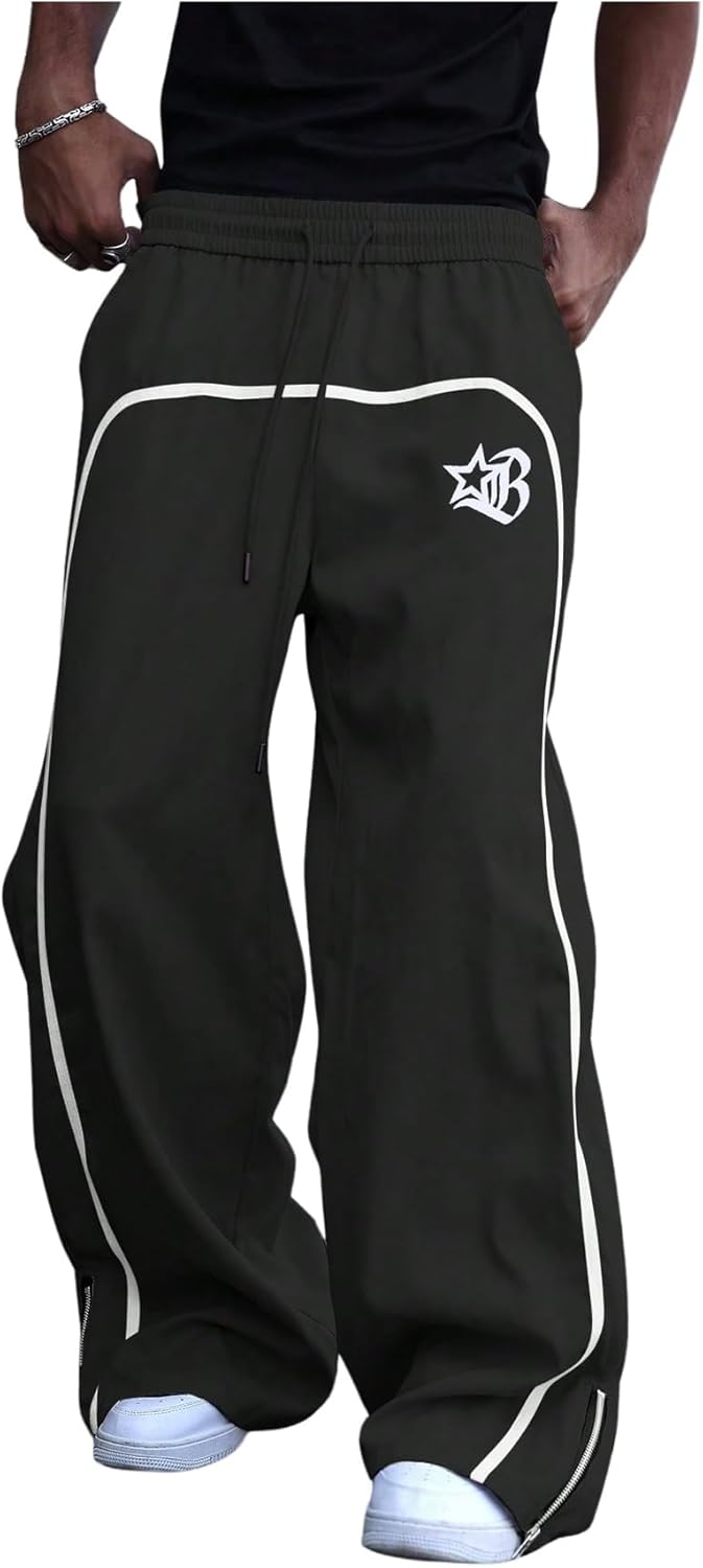GORGLITTER Men's Wide Leg Baggy Sweatpants Y2K Graphic Zip Hem Casual Workout Athletic Trousers Track Pants