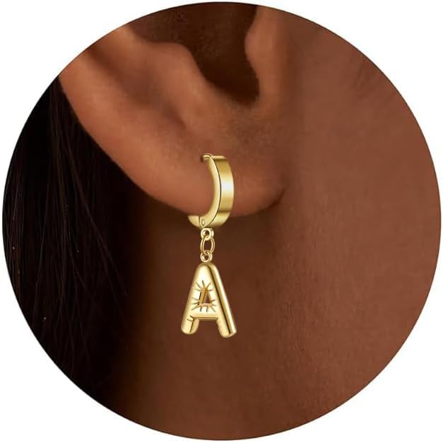 bubble exquisite letter Earring for Women Gold Plated Dainty Balloon Initial Earring,Charm Puffy Name Personalized A-Z Alphabet Jewelry Gift