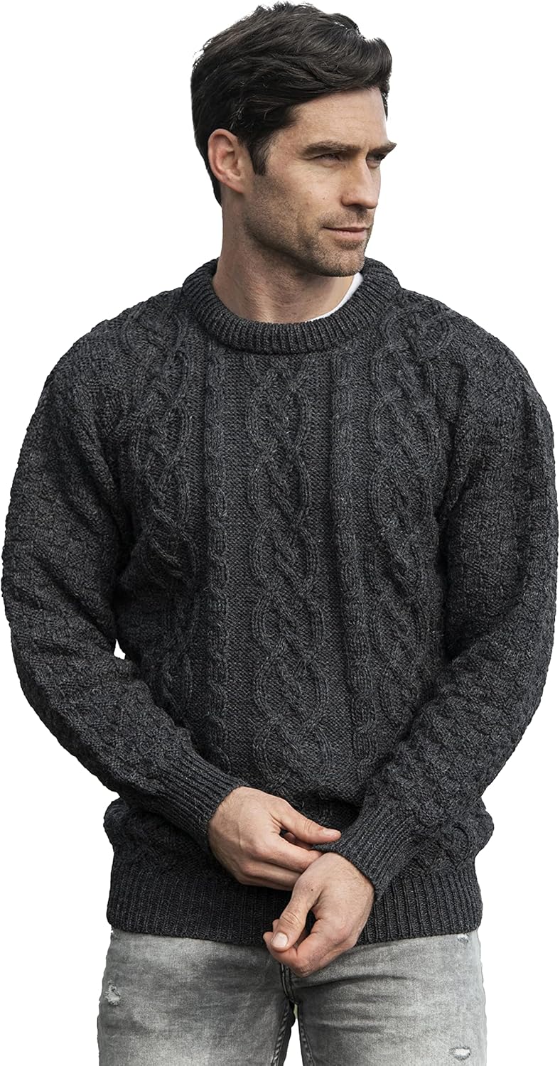 Aran Crafts Basket Stitch Crew Neck Sweater (100% Wool)