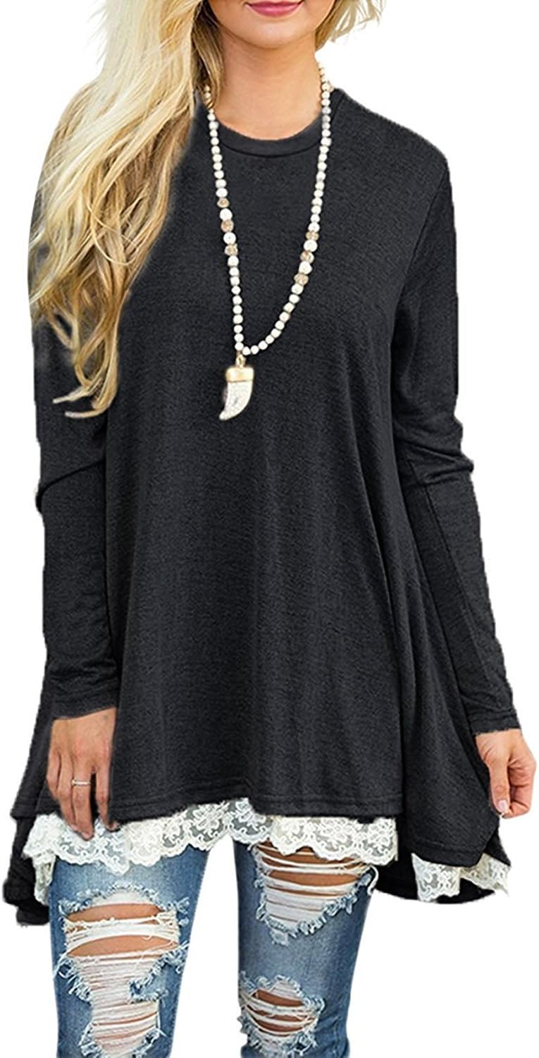 WEKILI Women's Tops Long Sleeve Lace Scoop Neck A-line Tunic Blouse