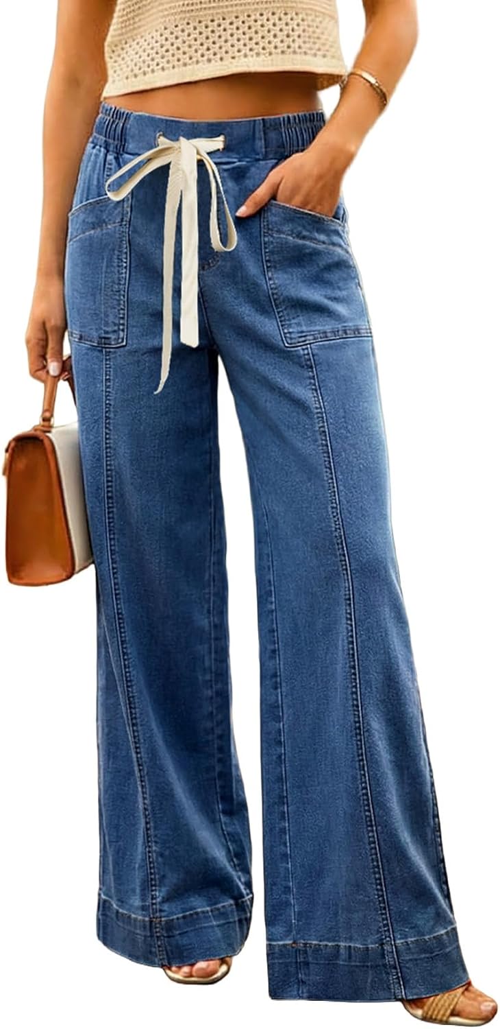 SHEWIN Womens Wide Leg Jeans High Waisted Tummy Control Stretchy Straight Leg Jeans Vintage Denim Casual Baggy Pants