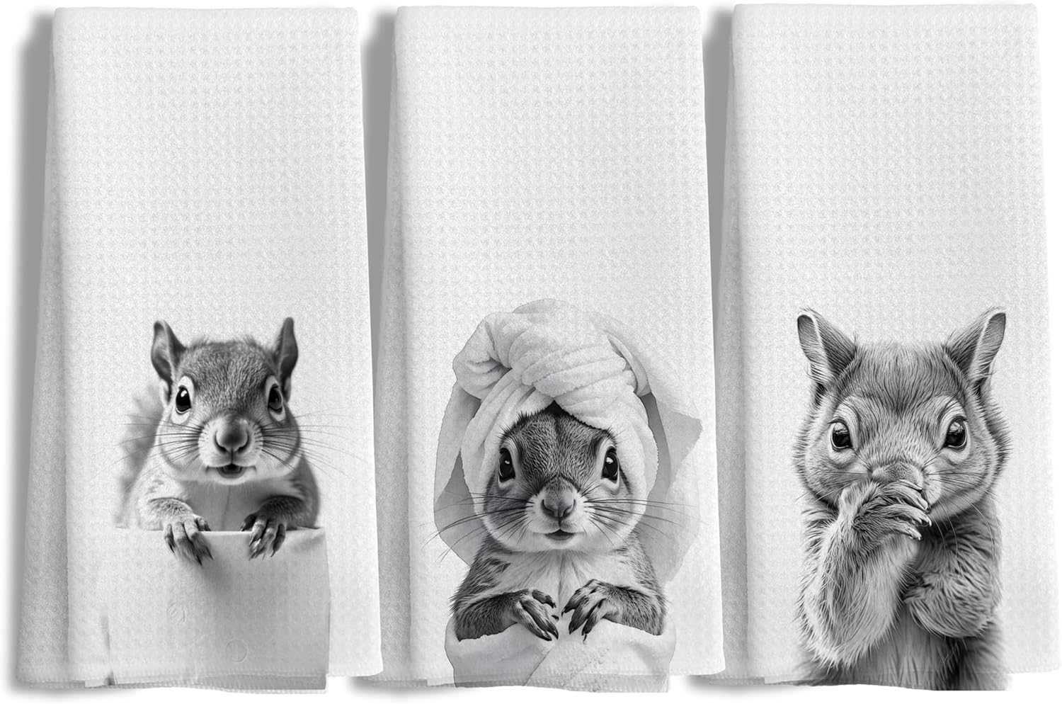 Funny Squirrel Hand Towels for Bathroom Kitchen Decor Set of 3, Squirrel Lover Lover Gifts, Funny Kids Bathroom Hand Towels,16x24 Inches