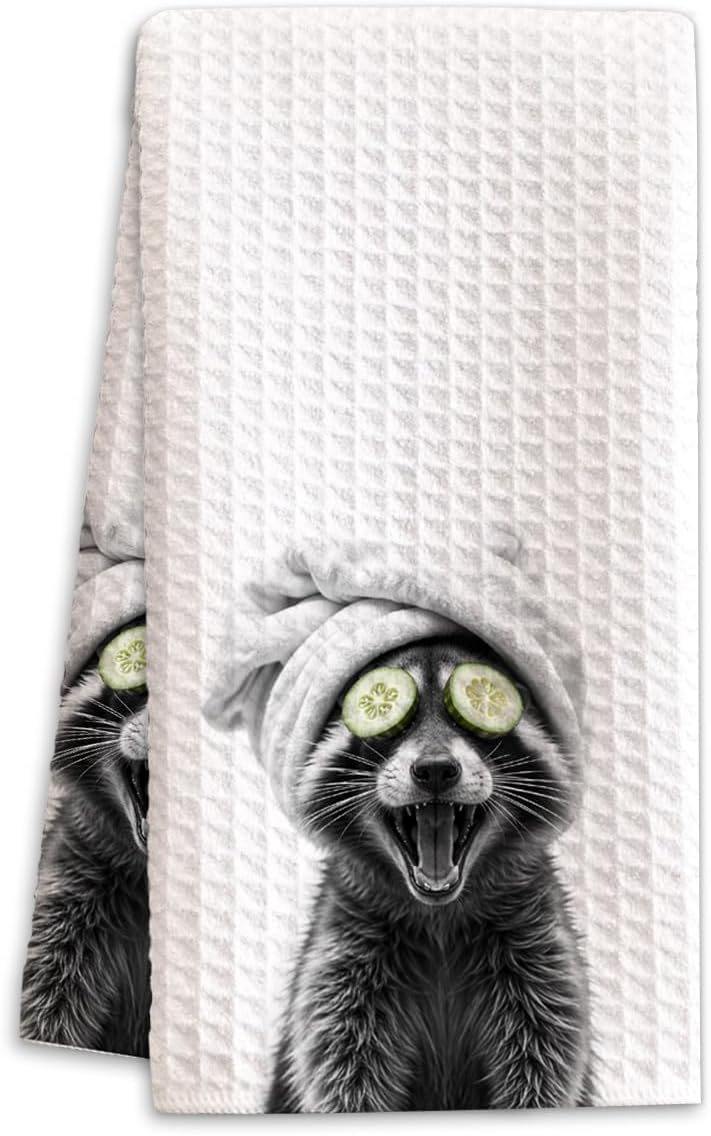- Adorable Raccoon Design: These charming funny kitchen towels feature playful raccoon prints, adding a fun and whimsical touch to your kitchen, bathroom, or dining room. Perfect for animal lovers and unique home decor!