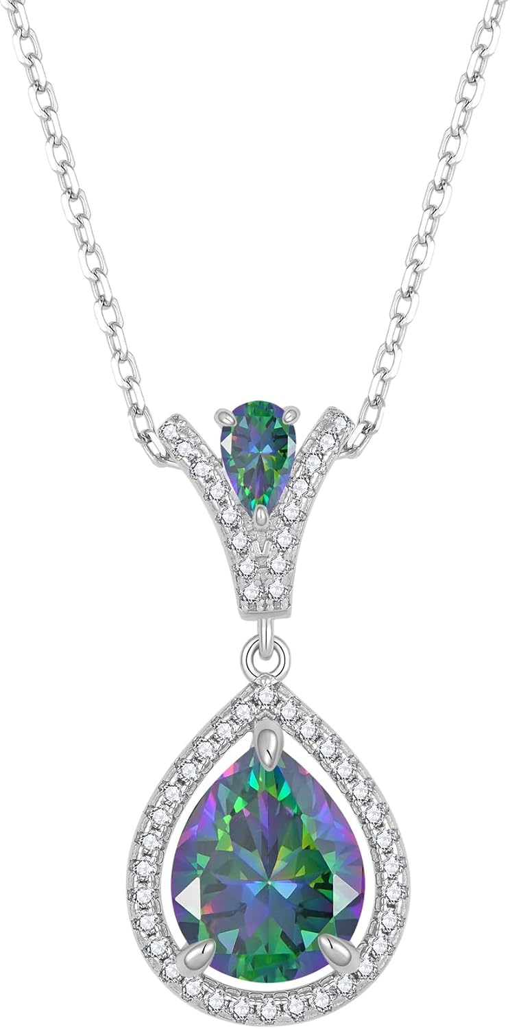 Birthstone Necklace 925 Sterling Silver Tear Drop 5A Cubic Zirconia Pendant Necklace Jewelry Birthday Gifts for Women