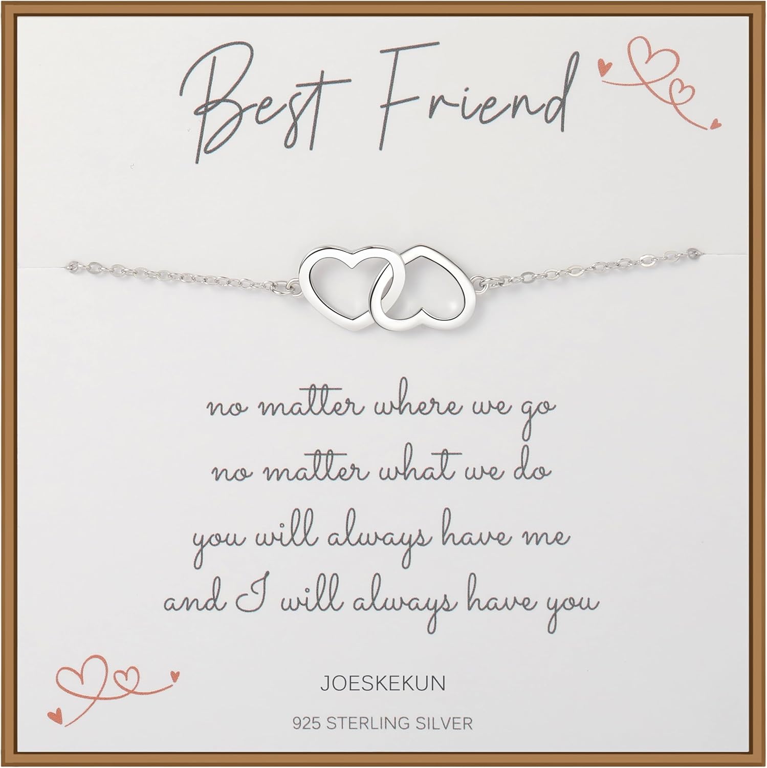 Best Friend Bracelet, 925 Sterling Silver Heart Bracelet, Friendship Gifts for Women