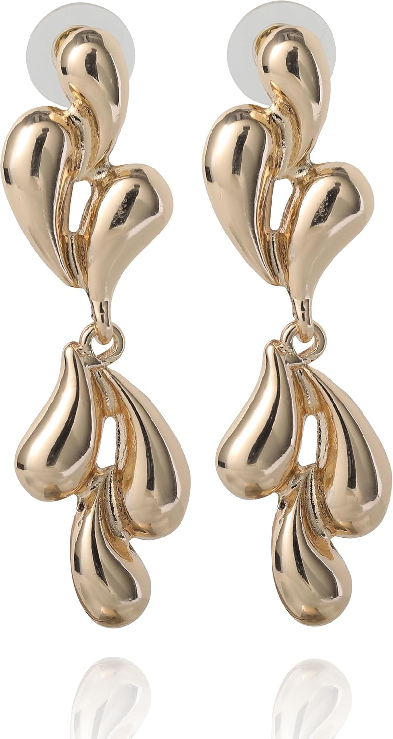 BCBGeneration Squiggle Shape Large Stud Earrings with Dangle Charm, Gold-Tone Drop Earrings for Women