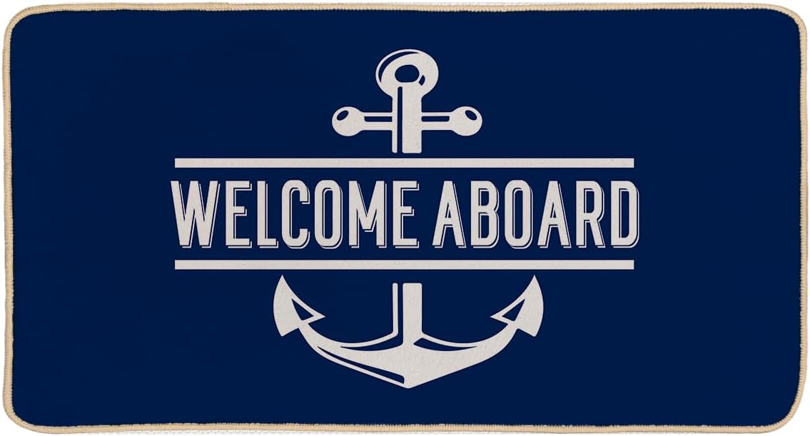 EXUQO Nautical Door Mat,Boat Mat,Welcome Mats for Floor,Anchor Decor,Welcome Aboard Navy Blue Door Mat,Lake House Front Door Porch Indoor Floor Mat,30x16 Inch
