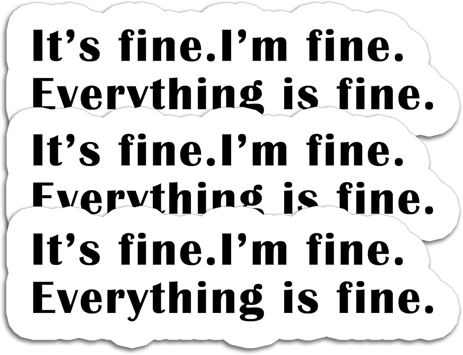 (3Pcs) It’s Fine I’m Fine Everything Is Fine Stickers, Funny Sarcastic Quote, Inspirational Mental Awareness Vinyl Decals, Motivational Waterproof Sticker for Laptops Water Bottles Scrapbooks, 3" x 1"