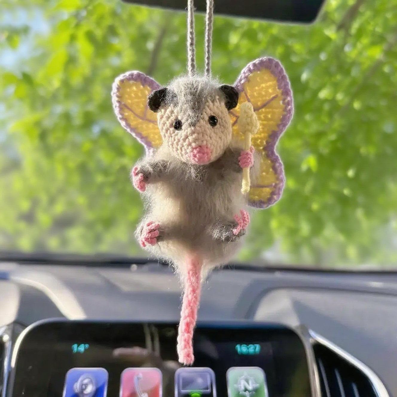 Fairy Possum Car Charm, 2025 Upgraded Opossum Gifts Rearview Mirror Accessory Swinging Car Ornament, Handmade Knitted Screaming Possum Rear View Mirror Pendant Ornament
