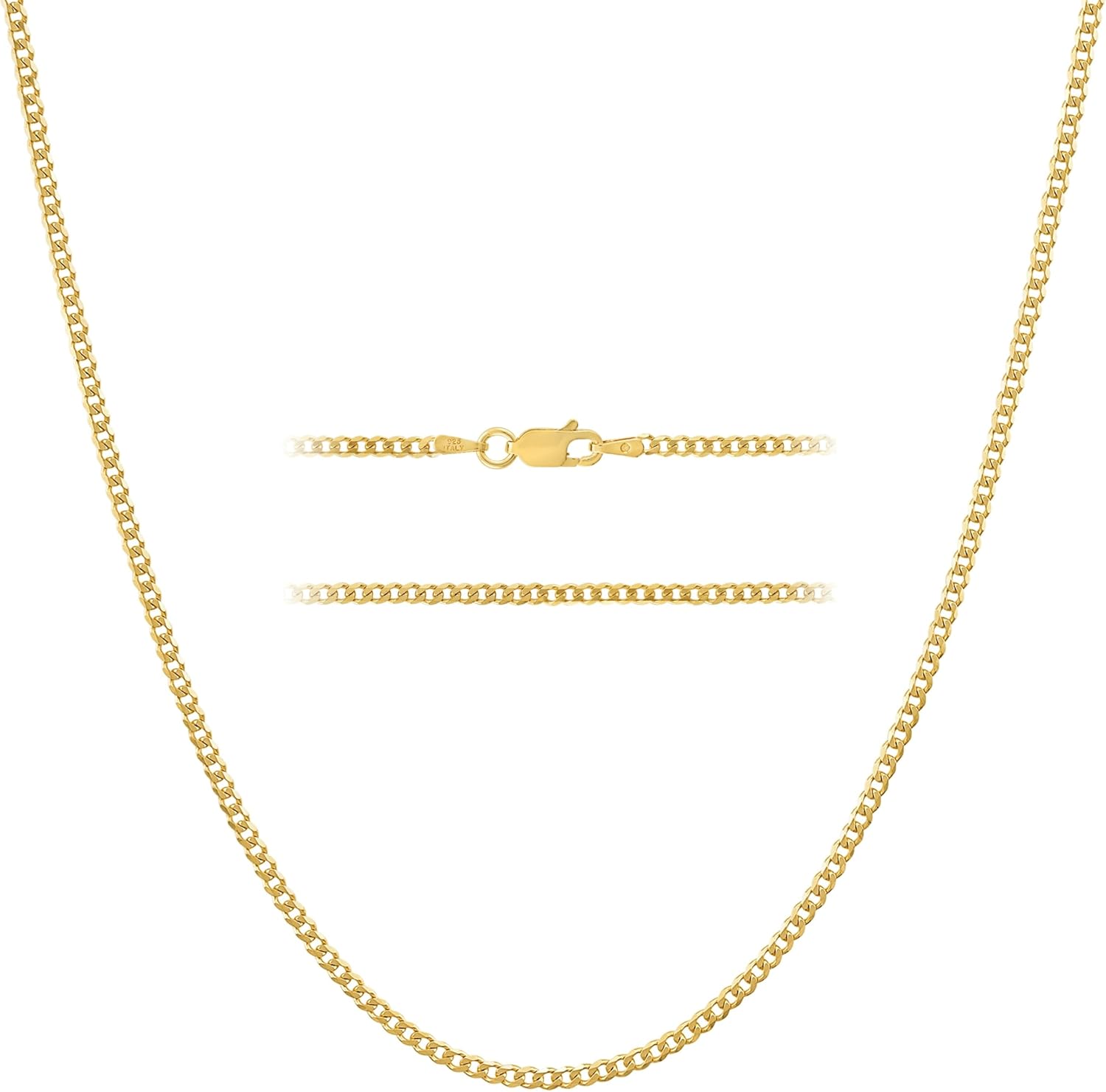 KISPER 18K Gold-Plated 925 Sterling Silver Cuban Link Curb Chain Necklace – Italian Design, 1.75mm, 2.5mm for Men & Women with Lobster Clasp, Made in Italy