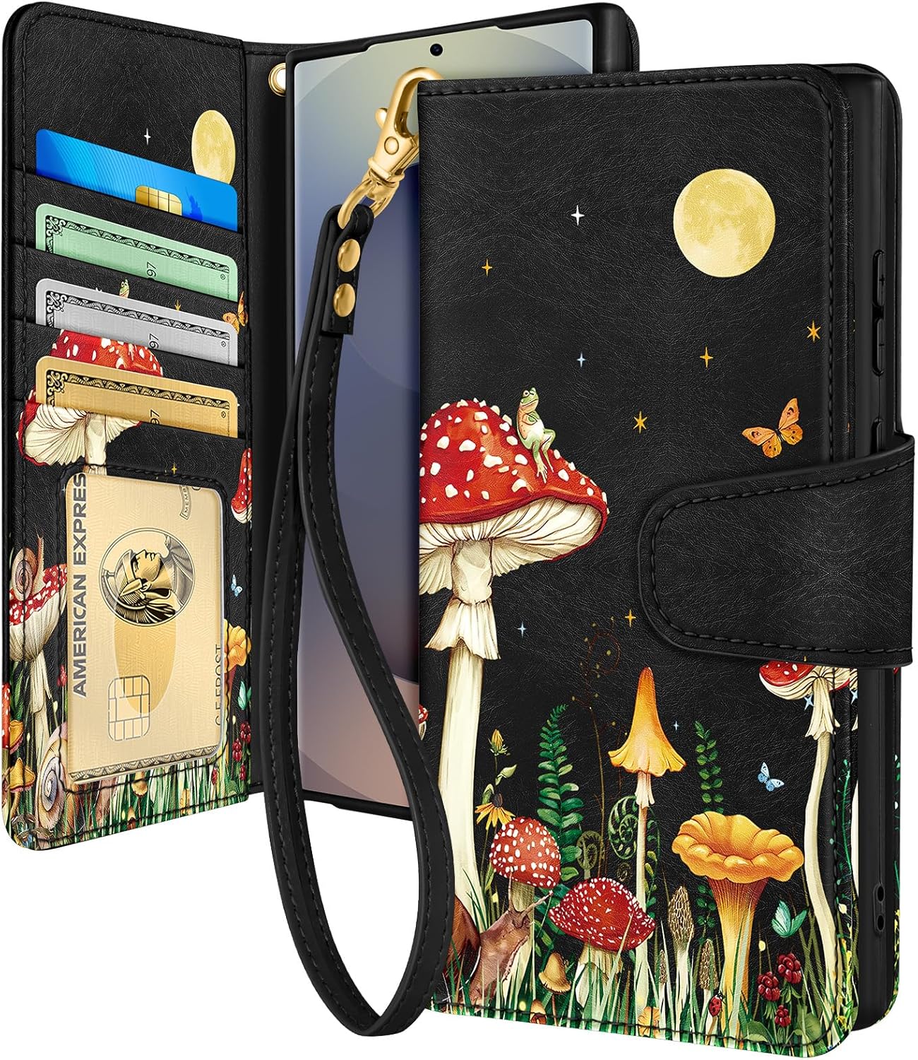 Toycamp for Samsung Galaxy S25 Ultra Wallet Case with Wrist Strap - Leather Flip Folio Phone Case with RFID Blocking 4 Card Slots Galaxy S25 Ultra Funda Cute Aesthetic for Women Lady, Moon Mushroom