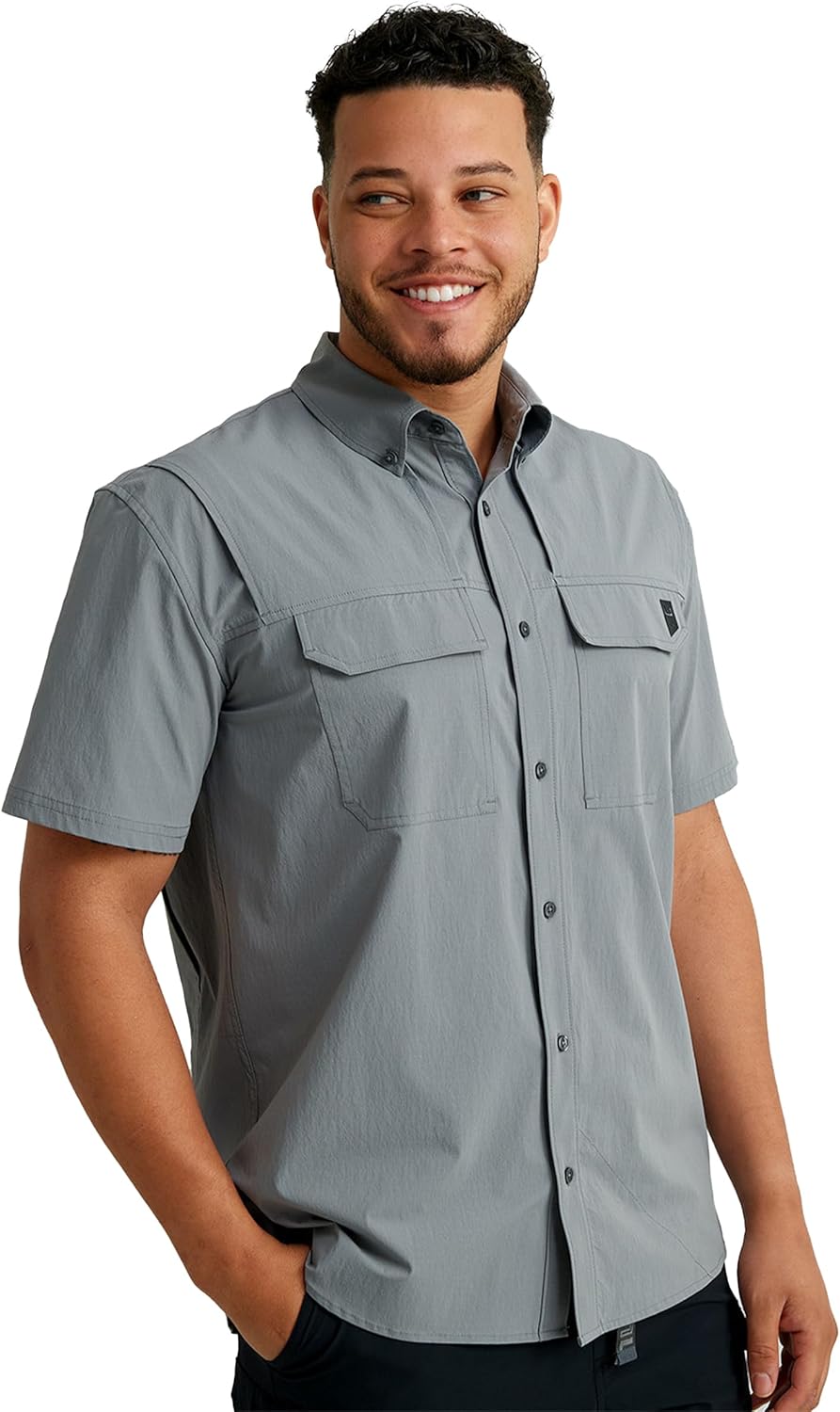 HUK Mens Back Draft Solid Short Sleeve Button Down Shirt, Vented Fishing Shirt for Men