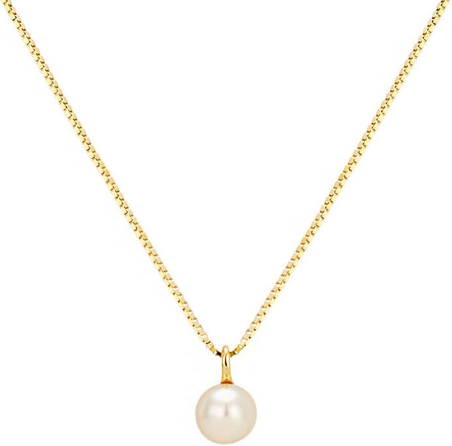 Single Pearl Necklace Freshwater Pearl Pendant 925 Sterling Silver with 14K Gold Necklaces Gift for Women