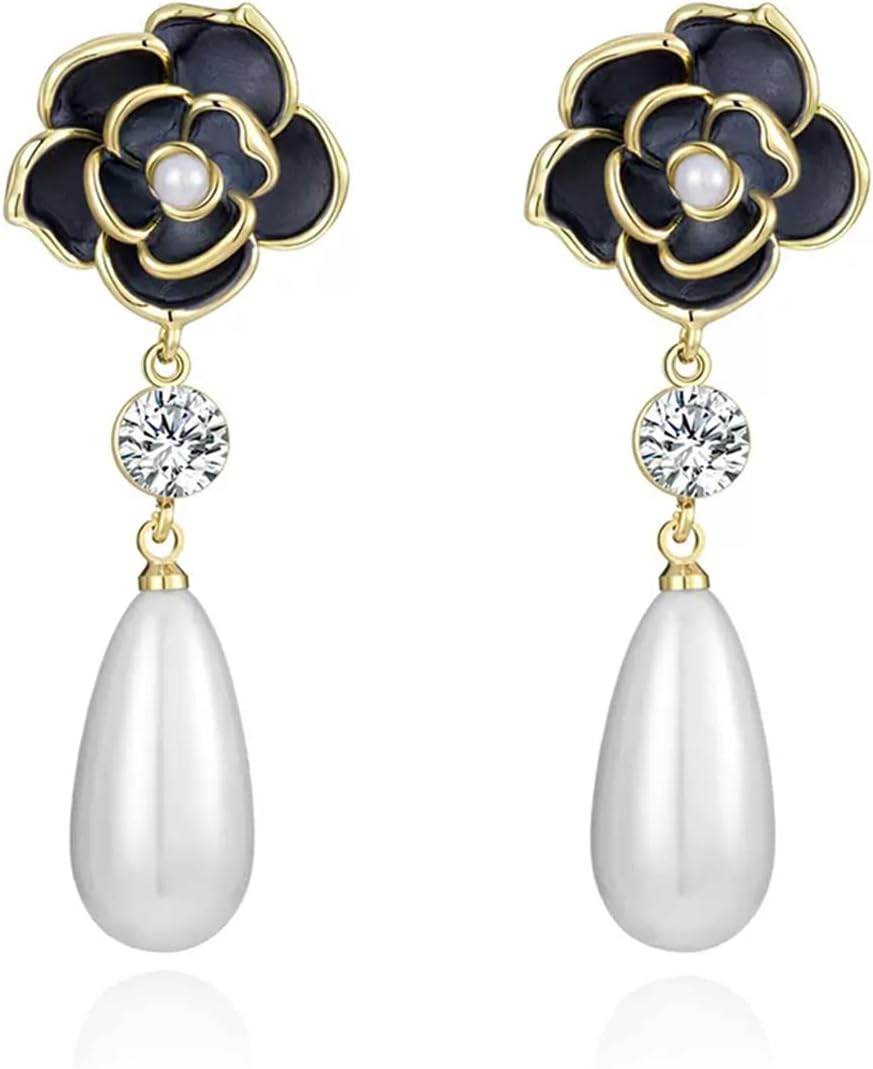 Fashion Celebrity Designer Imitation Pearl Flower Dangle Stud Earrings for Women