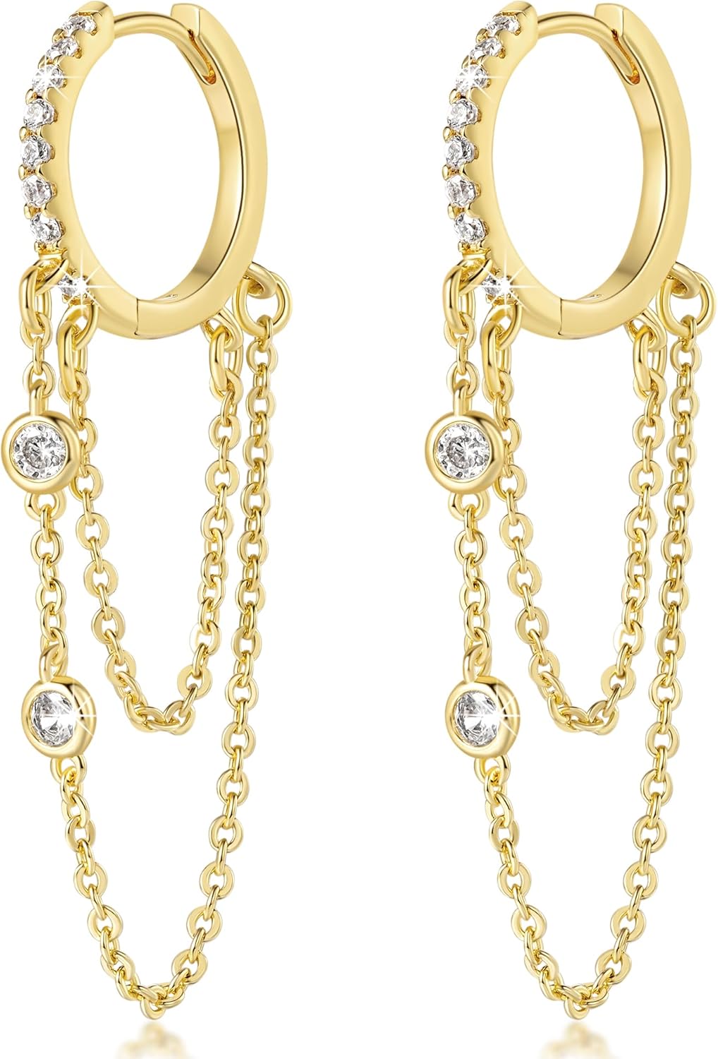 14K Gold Earrings for Women Dangle Gold Hoop Earrings for Women Dangling Tassel Chain with Cubic Zirconia Earring Dangling