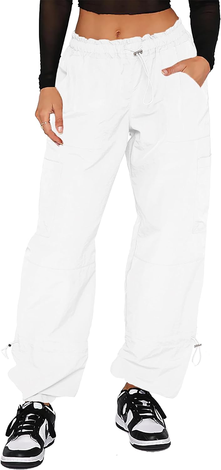 Waitfairy Cargo Pants Women Drawstring Elastic Waist Baggy Parachute Pants Woman Y2K Bottoms with Multiple Pockets