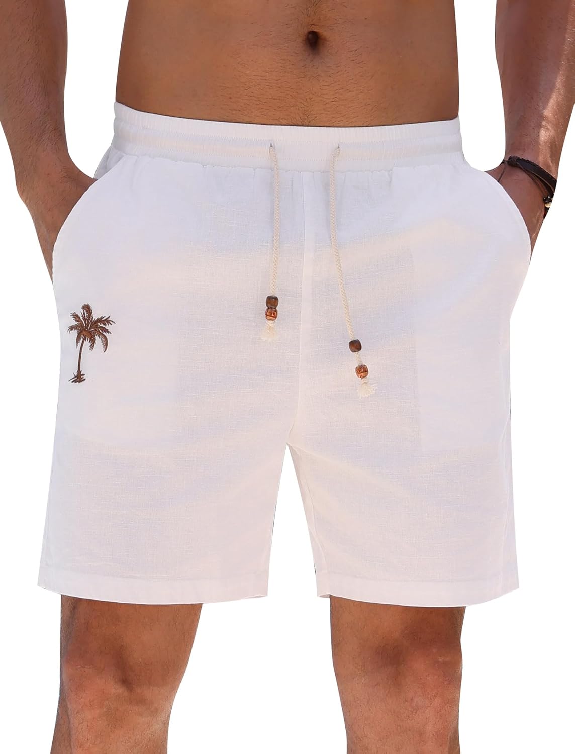 OLEMEK Men's Casual Shorts Elastic Waist Drawstring Palm Tree Summer Beach Shorts with Pockets