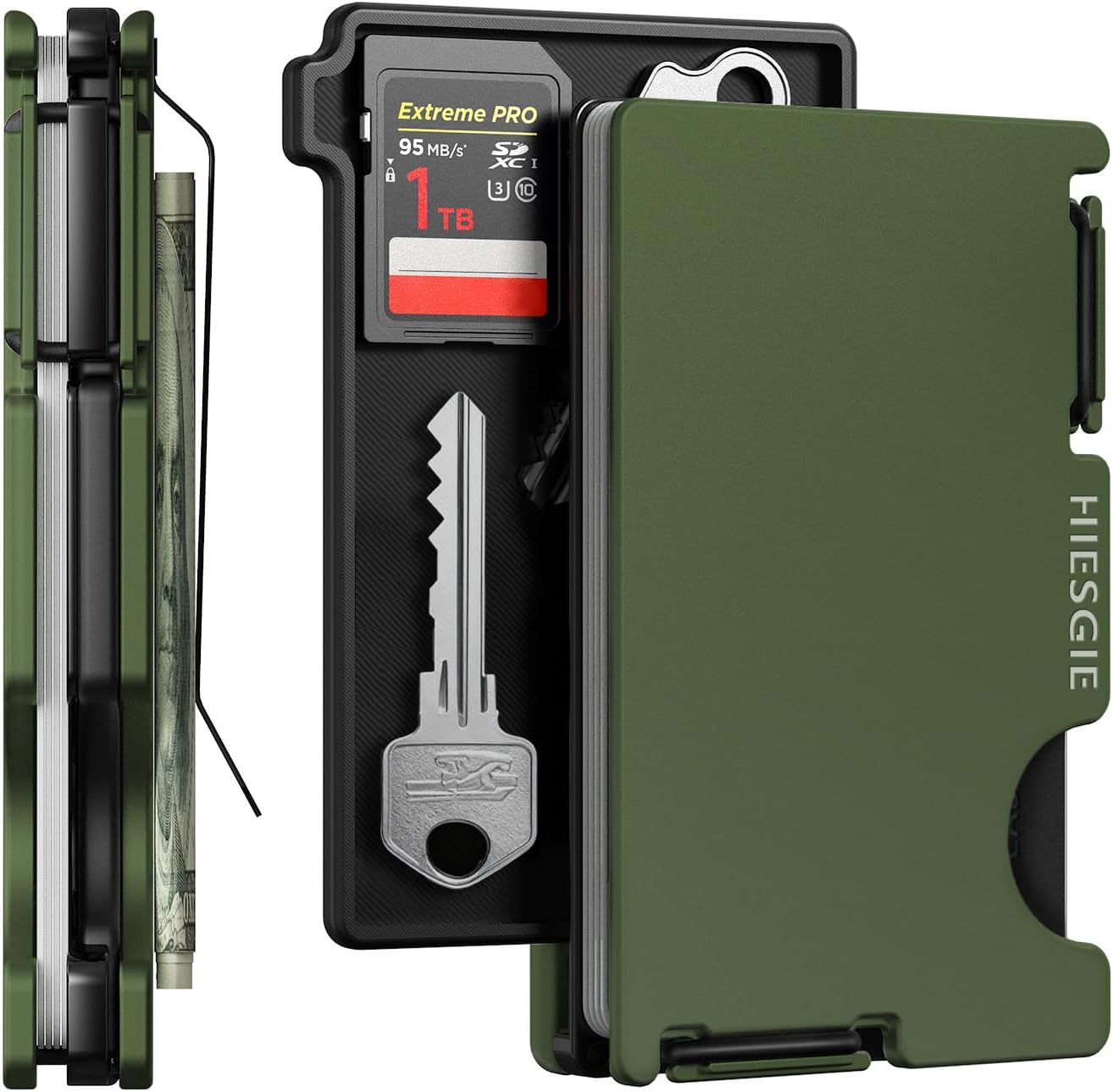 Wallet for Men with Inner Key Coin Tray, Minimalist Card Holder with Money Clip, Slim Metal Front Pocket Wallet, RFID Blocking, Army Green, PMLCO-04