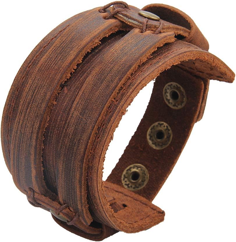 Jeilwiy Punk Leather Wristbands for Men Bracelets Handmade Wide Cuff Bangle Braided Jewelry Black Brown Adjustable - Punk Father's Gifts