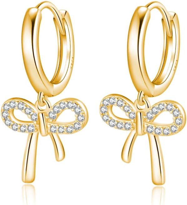 Reffeer Solid 925 Sterling Silver Bow Drop Hoop Earrings for Women Teen Girls Bowknot Hoop Earrings Huggie Ribbon Earrings