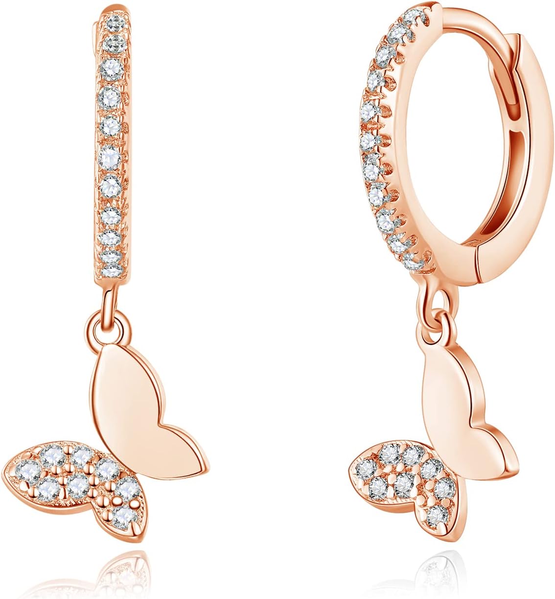 Dainty Dangle Hoop Earring for Women - Small Huggie Hoop Earrings Sets with Butterfly, Bee, Key Charm in 925 Sterling Silver or 18K Gold Plated