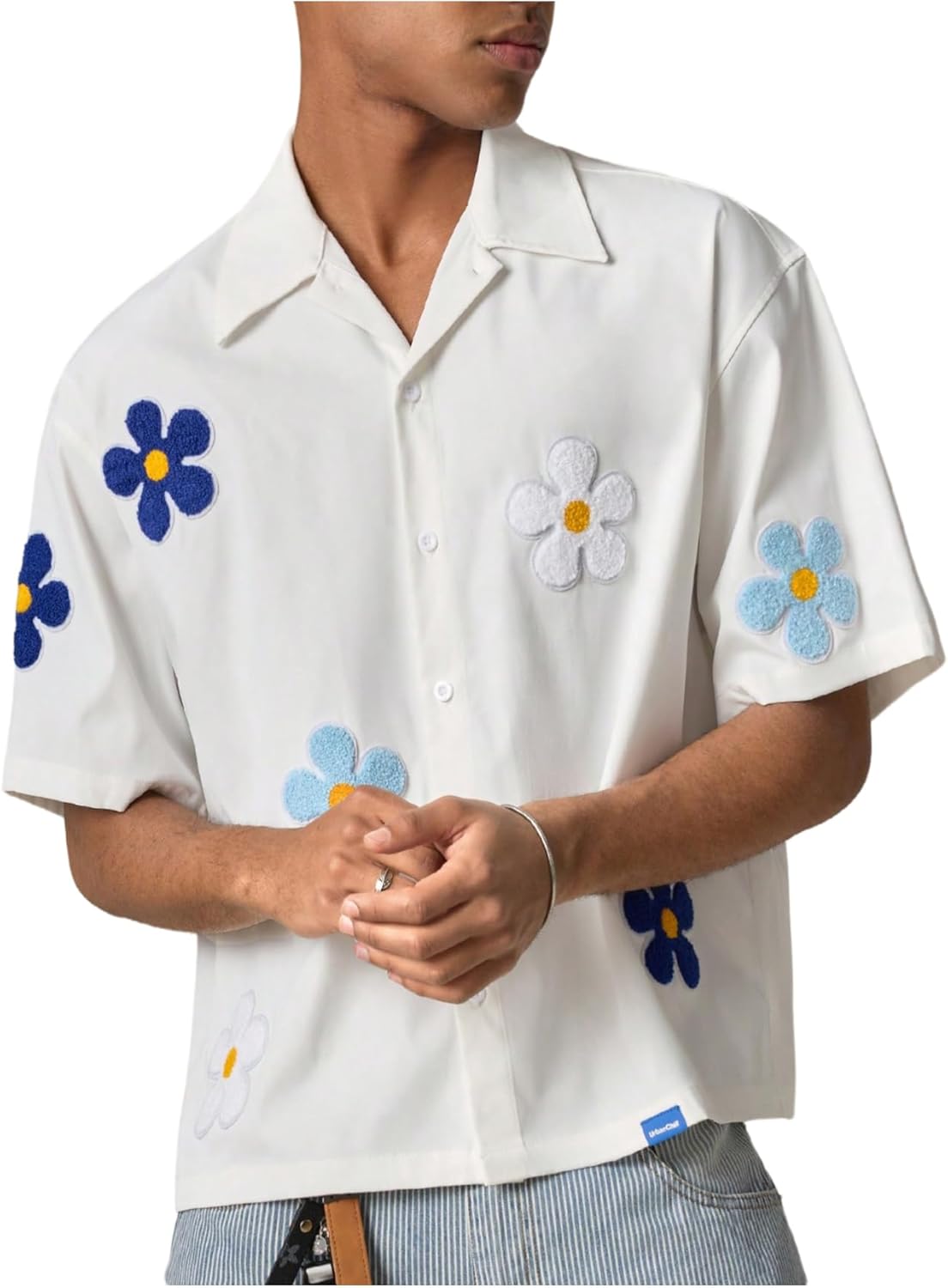 SHENHE Men's Oversized Short Sleeve Button Down Floral Shirt Collared Summer Streetwear Top