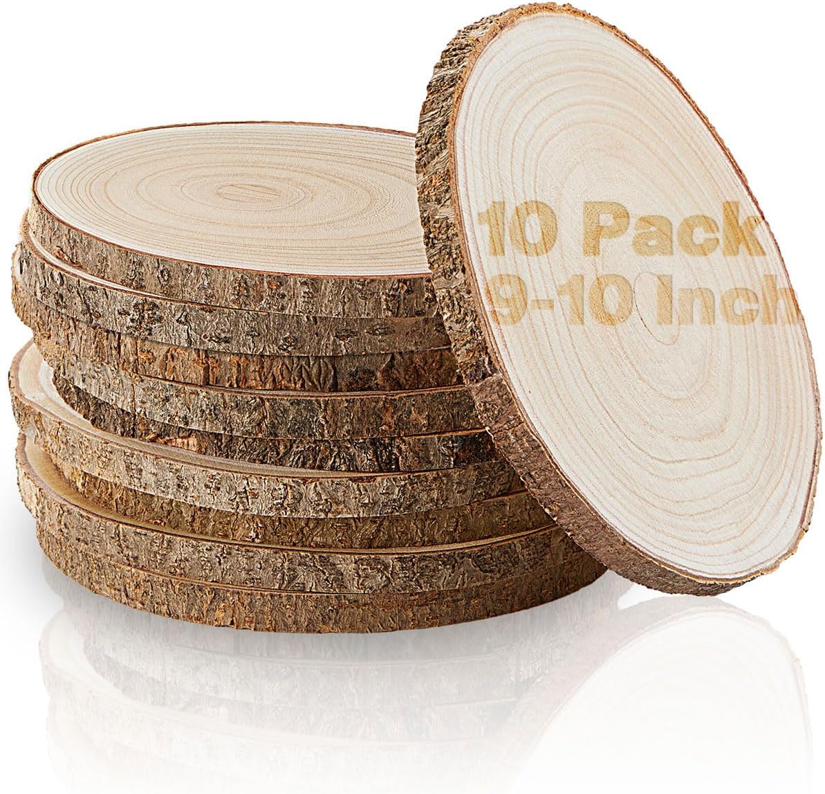 Set of (10) 9-10 Inches Wood Slices, Wood Centerpieces for Tables, Wood Slices for Centerpieces, Unfinished Wood Rounds for Rustic Wedding, Baby Shower, Party, Natural Paulownia Slabs