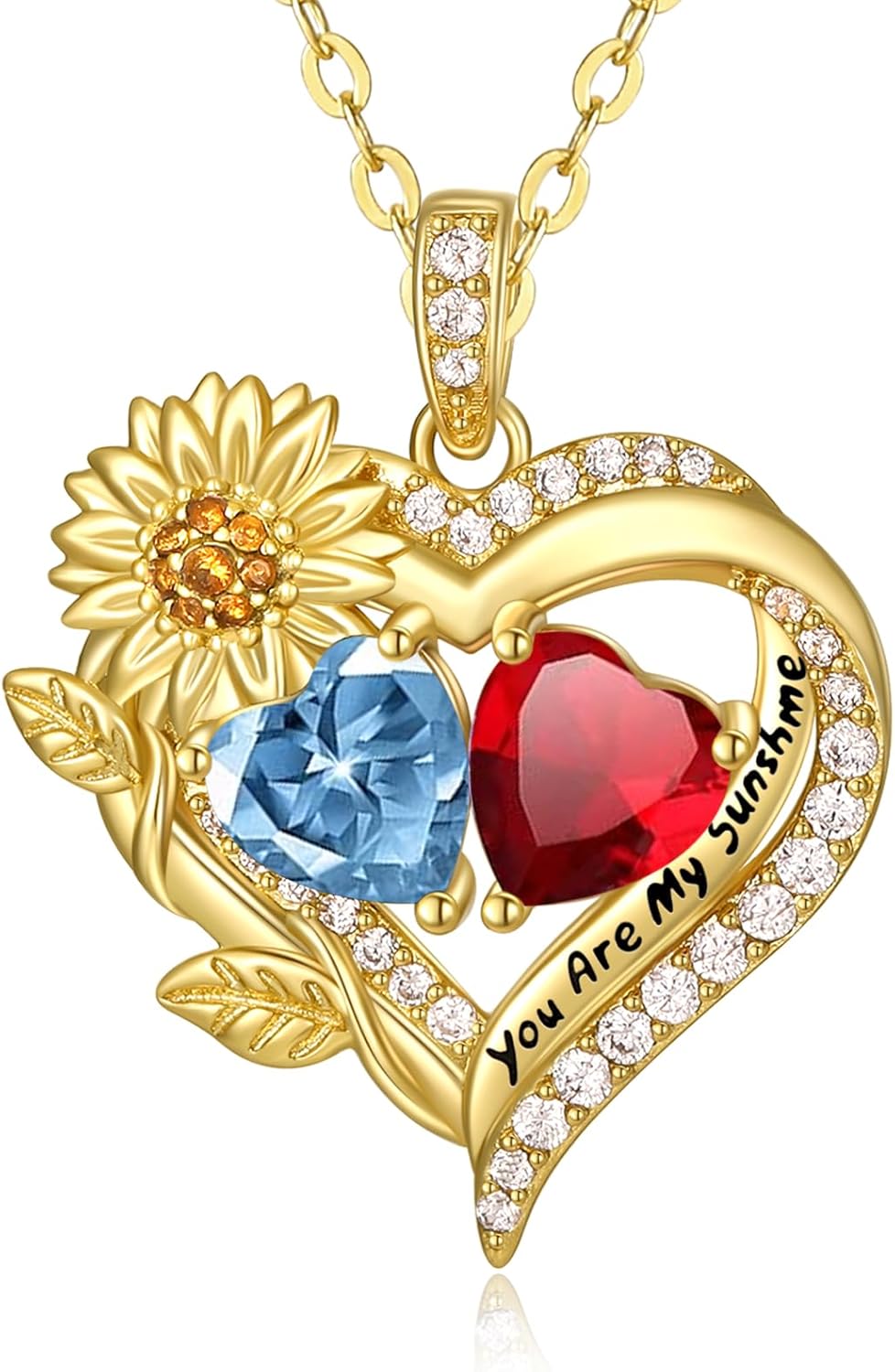 Sunflower Heart Necklace for Women 14K Gold Exquisite Valentines Day Anniversary Birthday Gifts for Wife Mother Her Double Birthstone Pendant Jewelry‘You Are My Sunshine’