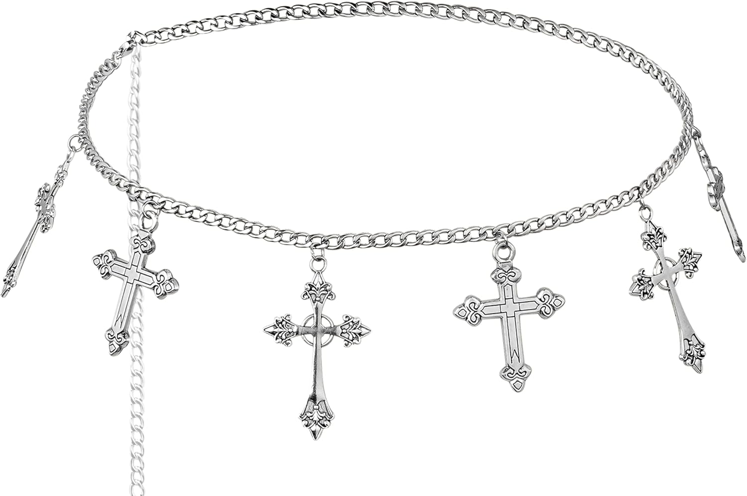 Sacina Gothic Silver-tone Cross Chain belt, Waist Belly Chain, Gothic Goth Punk Grunge Emo Belt, Goth Accessories