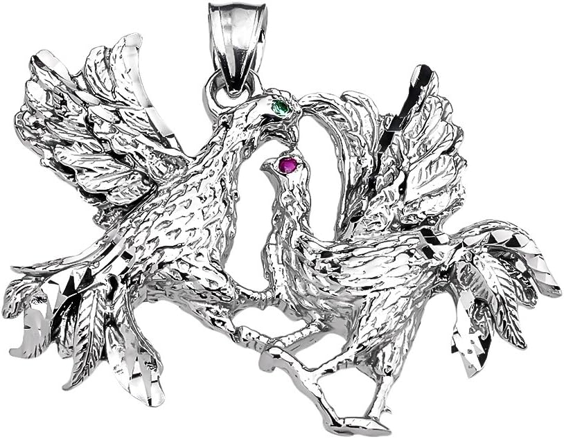 Animal Kingdom Sterling Silver Red and Green CZ Fighting Roosters Pendant