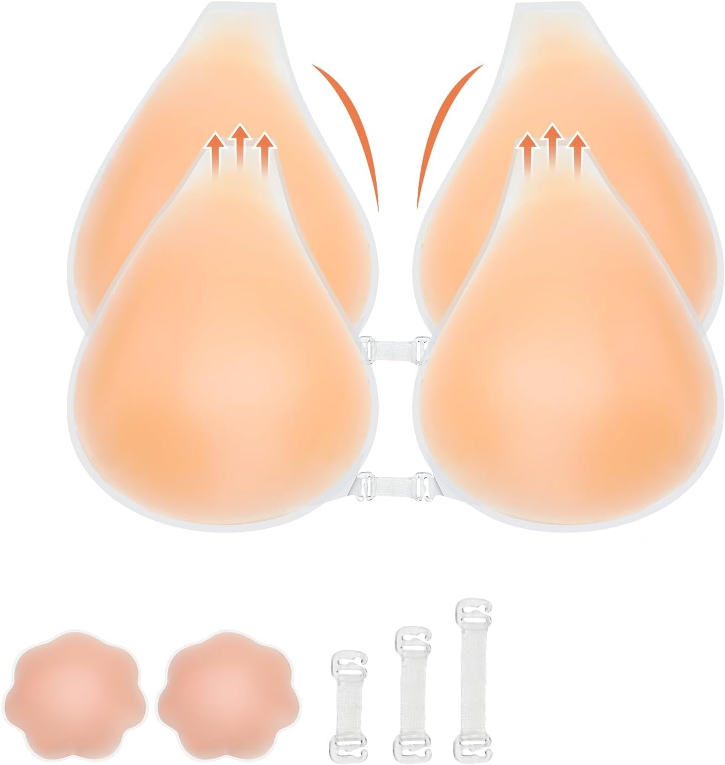 Sticky Bra 2Pairs Adhesive Strapless Bras for Women Backless Dress Invisible Breast Lift Silicone Stick On Bra with Gift Box A-B Cup Beige