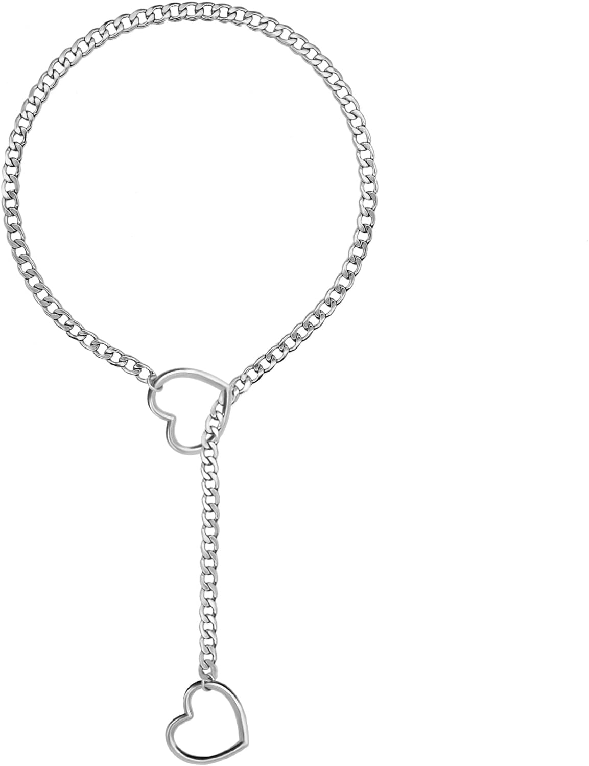 Heart Slip Chain Necklace for Women Punk Gothic Cuban Necklace Slip Chain Choker Necklace Adjustable Lariat Y-Necklace