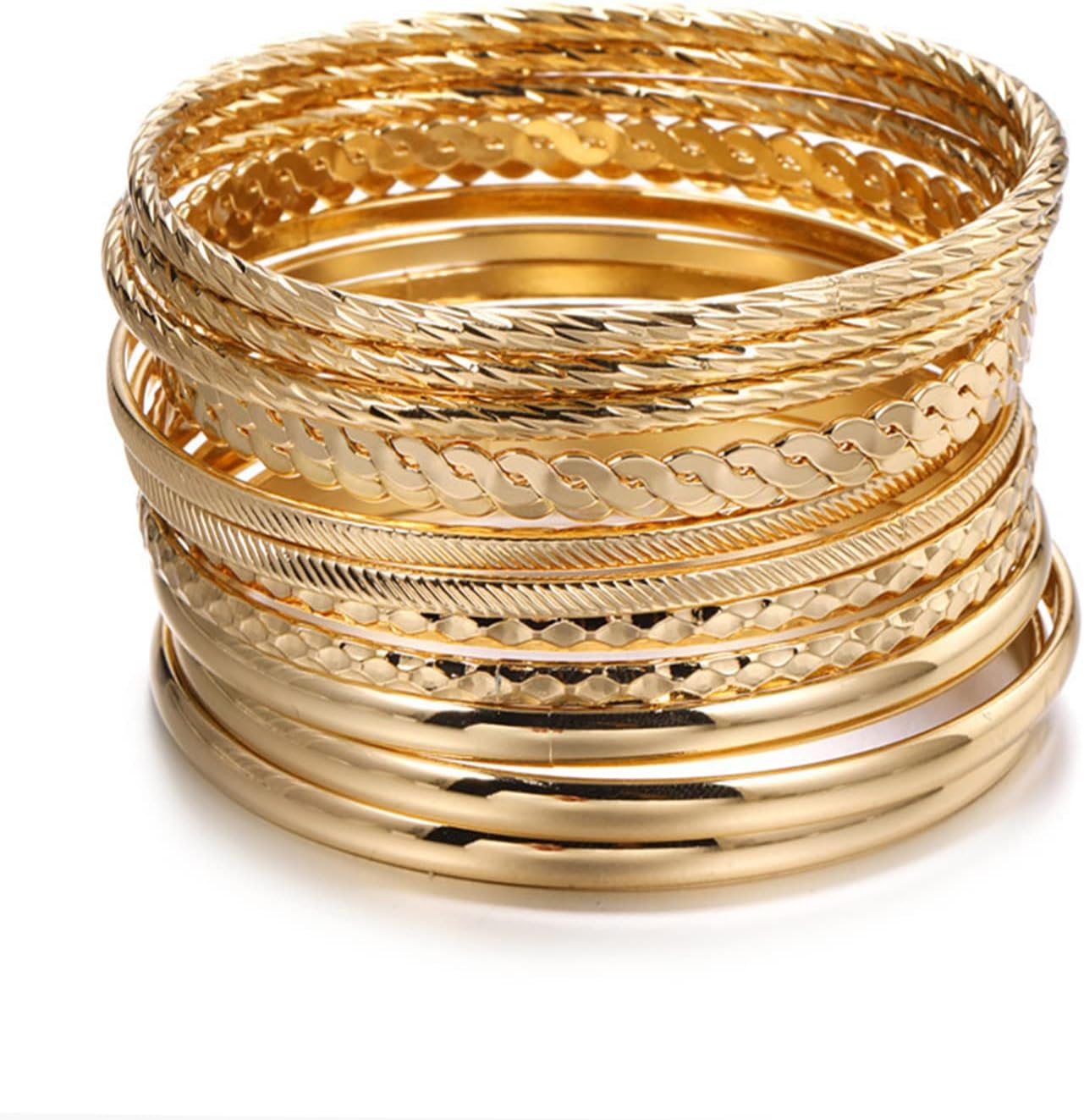 12Pcs Bangle Collection Alloy Metal Textured Color Design Gifts Large Size Bangle Bracelets Set for Women