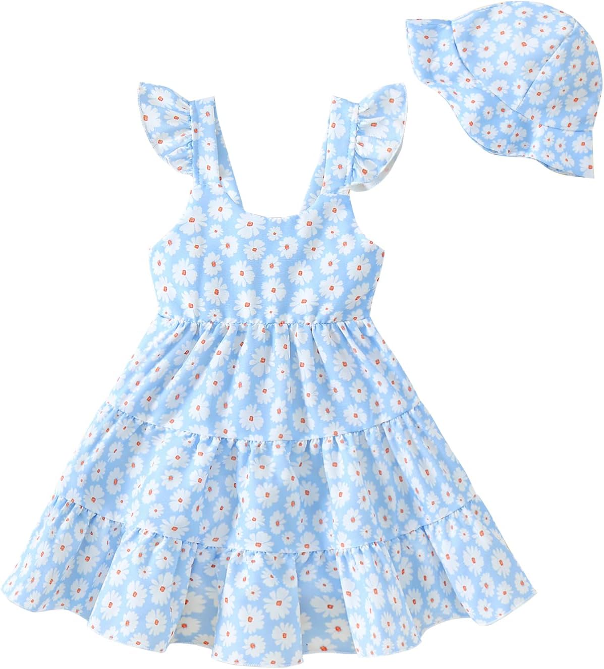Toddler Baby Girl Dress Summer Clothes Little Girls Ruffle Sleeveless Dresses Kids Beach Sundress with Hat