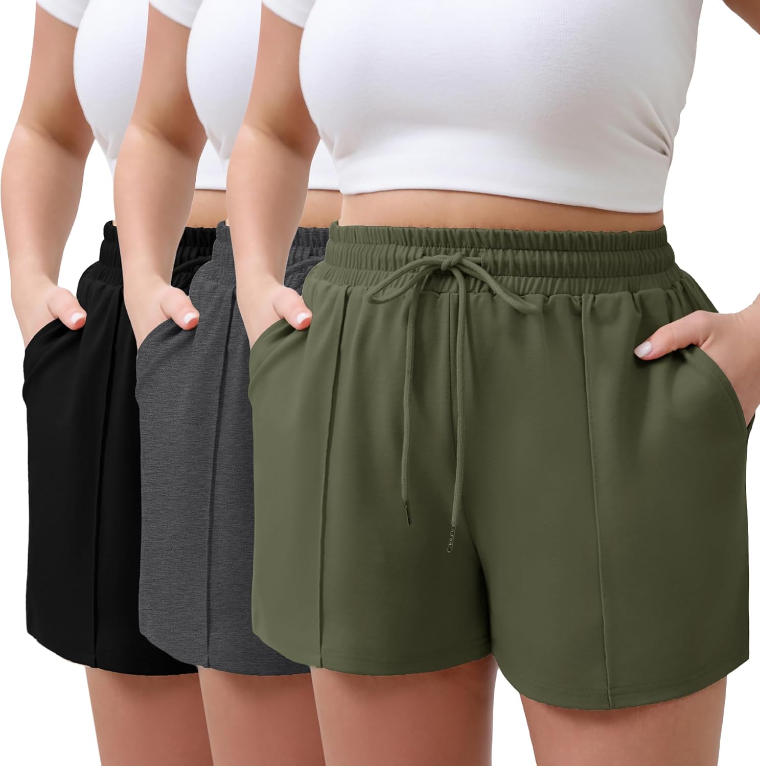 Neer 3 Pack Women's Plus Size Sweat Shorts, Drawstring Shorts with Pocket Summer Athletic Lounge Running Bottoms