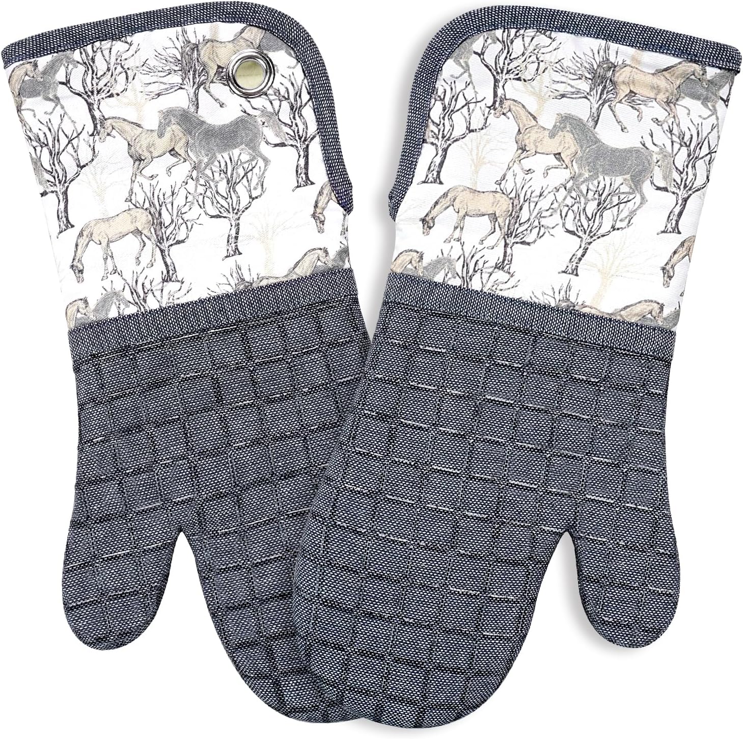 Silicone Printing Oven Mitts Heat Resistant to 500 Degree,Yarm-Dyed Oven Gloves with Animal Design Non-Slip for Kitchen Cooking Barbecue Baking and Machine Washable. (Gray Oven Mitts)