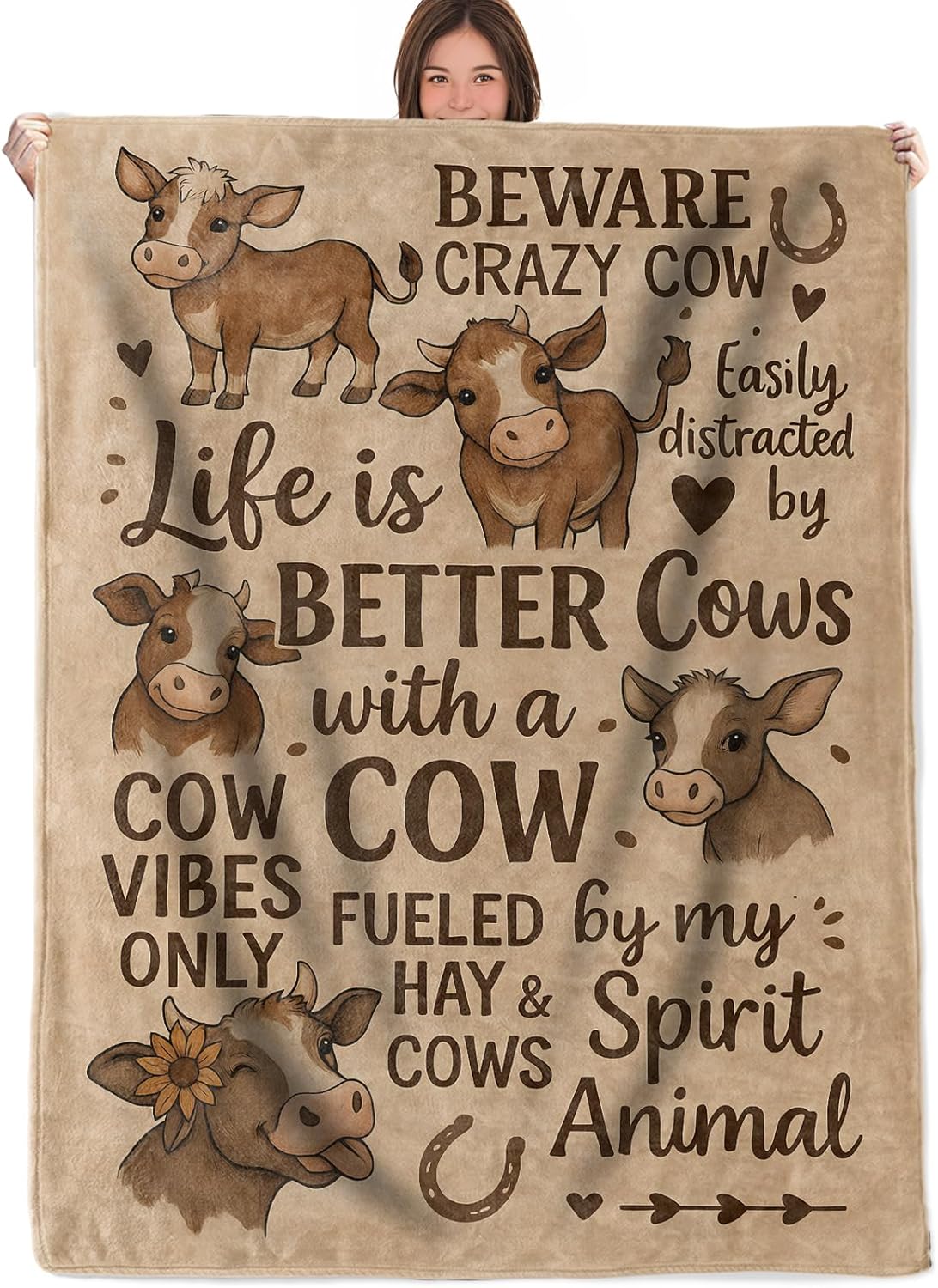 Cow Lover Throw Blanket Gifts for Boys Girls Kids Adults, Farm Cow Flannel Blankets for Travel Sofa Living Room Decor 50"X60"